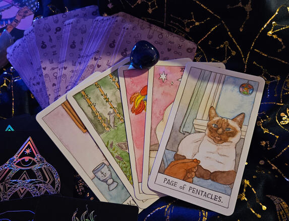 Cat Tarot. This deck is quirky and cute, full of cuddly friends to help offer wisdom and quidance. All she asks for in return is a nice sunny spot to rest.