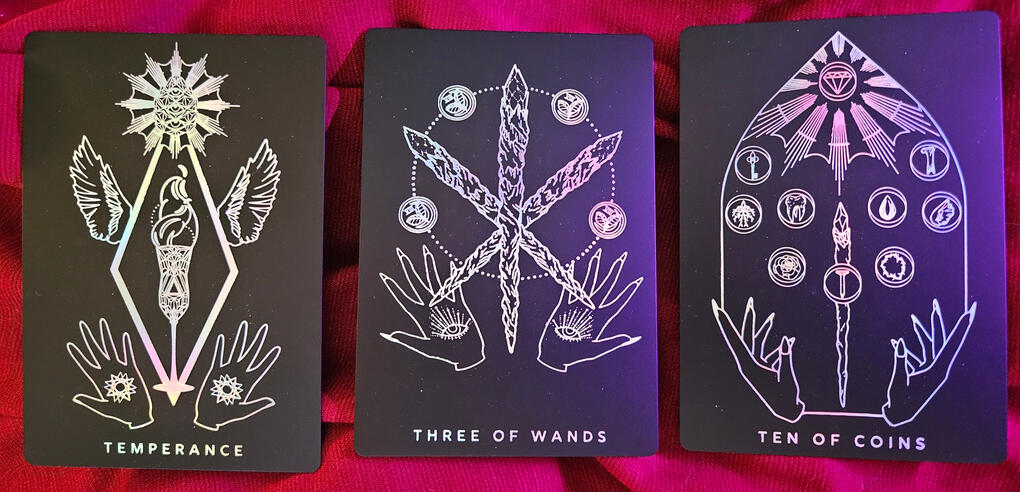 A three card linear spread can help you analyze your situation by looking at it from the past, the present, and the future. This may help you identify where energies or biases both internal and external have affected you, where you are currently in your situation, and what you can do to help to achieve your goal.